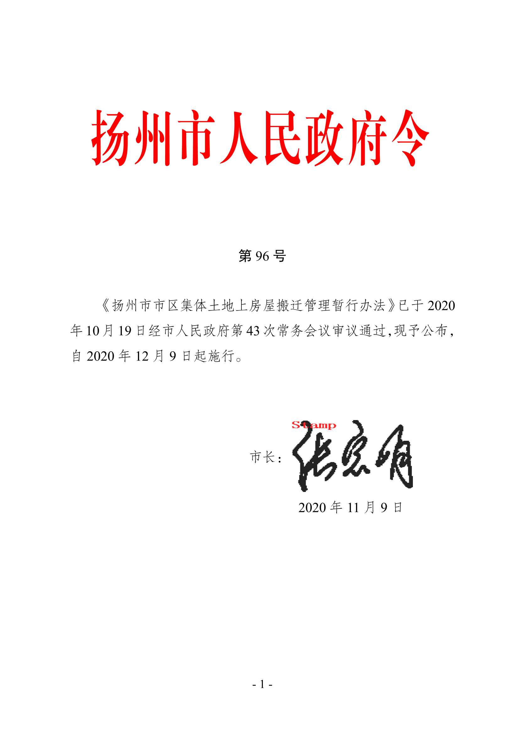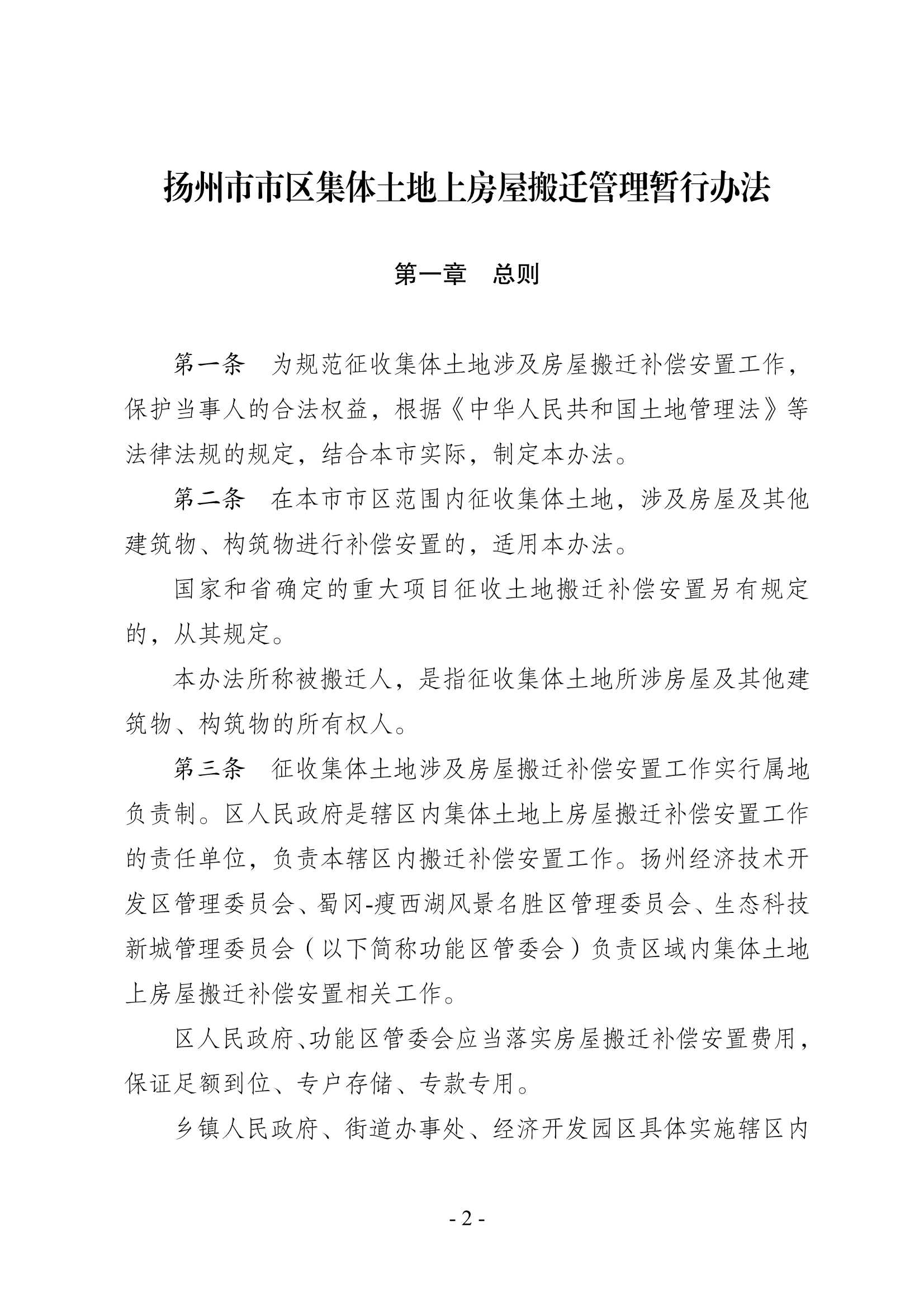 揚(yáng)州市市區(qū)集體土地上房屋搬遷管理暫行辦法
